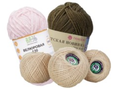 - Пряжа "Ирис" 100% хлопок (25гр);- Пряжа "Детская новинка" 100% акрил высокообъемный (200м 50гр);