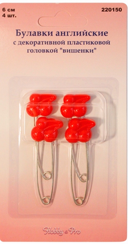 220150 Булавки английские с декоративной головкой 'вишенки'(4 шт)