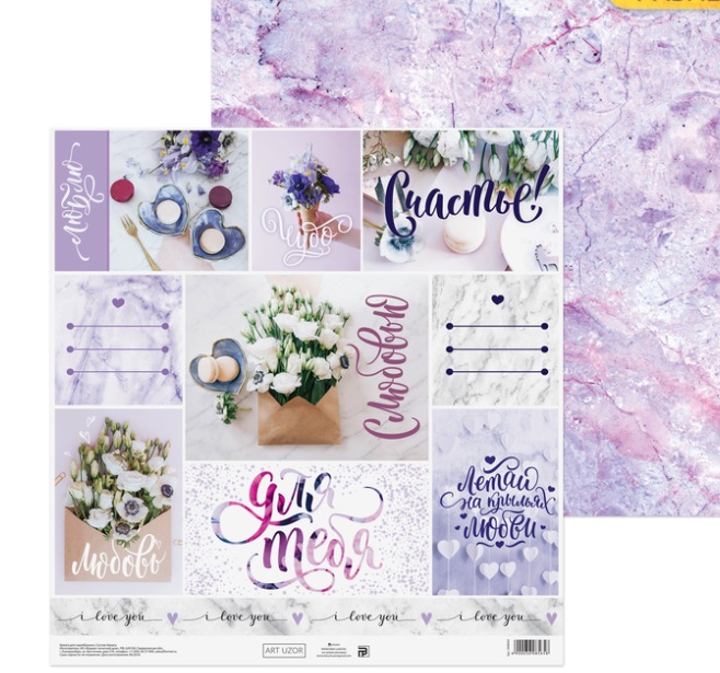 Бумага для скрапбукинга «С любовью», 30.5 × 30.5 см, 180 г/м
