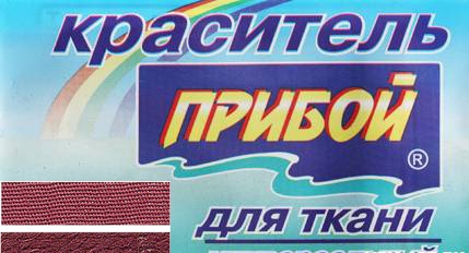 Краситель 'Прибой' предназначен для окрашивания тканей различного состава (синтетических, хлопчатобумажных, тканей смешанных волокон, в том числе и капрон).