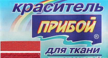 Краситель 'Прибой' предназначен для окрашивания тканей различного состава (синтетических, хлопчатобумажных, тканей смешанных волокон, в том числе и капрон).