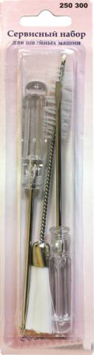 В наборе 3 предмета. В комплекте есть все необходимое: щетка-ёршик для прочистки челночного механизма, и две отвертки для регулировки натяжения нити в шпульке, замены иглы и других целей.