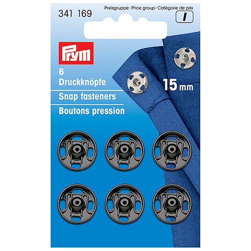 341169 Пришивные кнопки (латунь) черный цв 15 мм, 6шт Prym