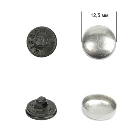 Пуговица под обтяжку №20 (12,5мм) пластик черный/алюминий (50шт)